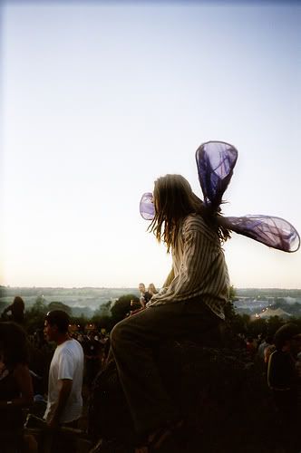 there's something about running amok on ancient druid soil i guess. there were wizards, fairies, bird people, gnomes, clowns and the like on festival grounds. like my idea of Devendra Banhart's Cripple Crow wedding. alot of social problems (police brutality, activists in costumes), alot of hippies (peace, love and acid), alot of nudity (painted and golden brown), alot of sun tanning, alot of sneering musicians and alot of shit (like literally -think cesspit). Rai would've digged Glastonbury in '71. He would've digged the tepees, the anarchy and the crusty living among the hippies. i would've dig all the unwashed, unruly haired, gangly men running around like wild children in the sun. haha.