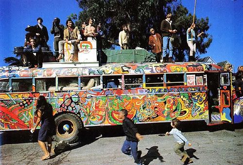 perhaps The Magic School Bus was inspired by Kesey & the Merry Pranksters' Further Bus. the bus was originally owned by a man who lived in a big house and who had 11 children. he got the bus outfitted with a sink, fridge, benches and bunks. Kesey and his brood bought it off the bloke and made further modifications to serve their kool aid acid test purpose (dude, you can jam decently on the rooftop of the bus. i'm not shittin' you). the venture was named: the acid test graduation. how do i know all this? nope, i didn't get it from wikipedia. i was enlightened by IH who got more ratty by the minute as he explained to me about the book he bought last night. if you can't get excited about the real thing, you can get excited about other people's dealings with the real thing. like Kesey and his Merry Pranksters and their tour across America.